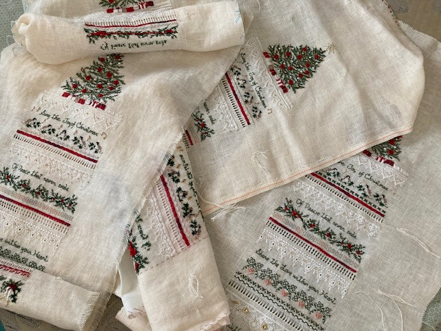クリスマスのロングサンプラーはいつも人気で皆さんクリスマスに合わせてお作りです。