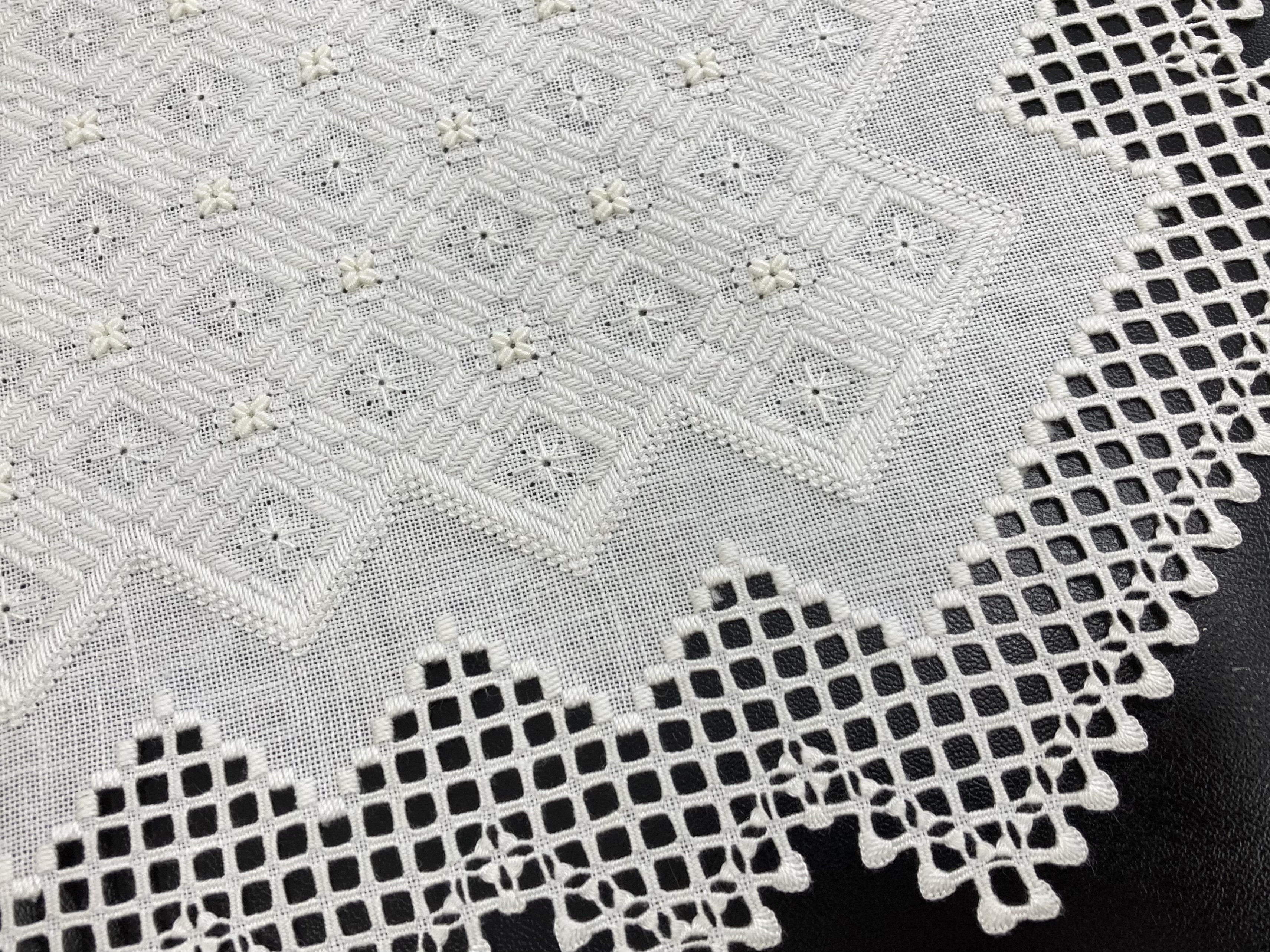 作品展の時に付箋にして売り出したドロンワークにいたします。