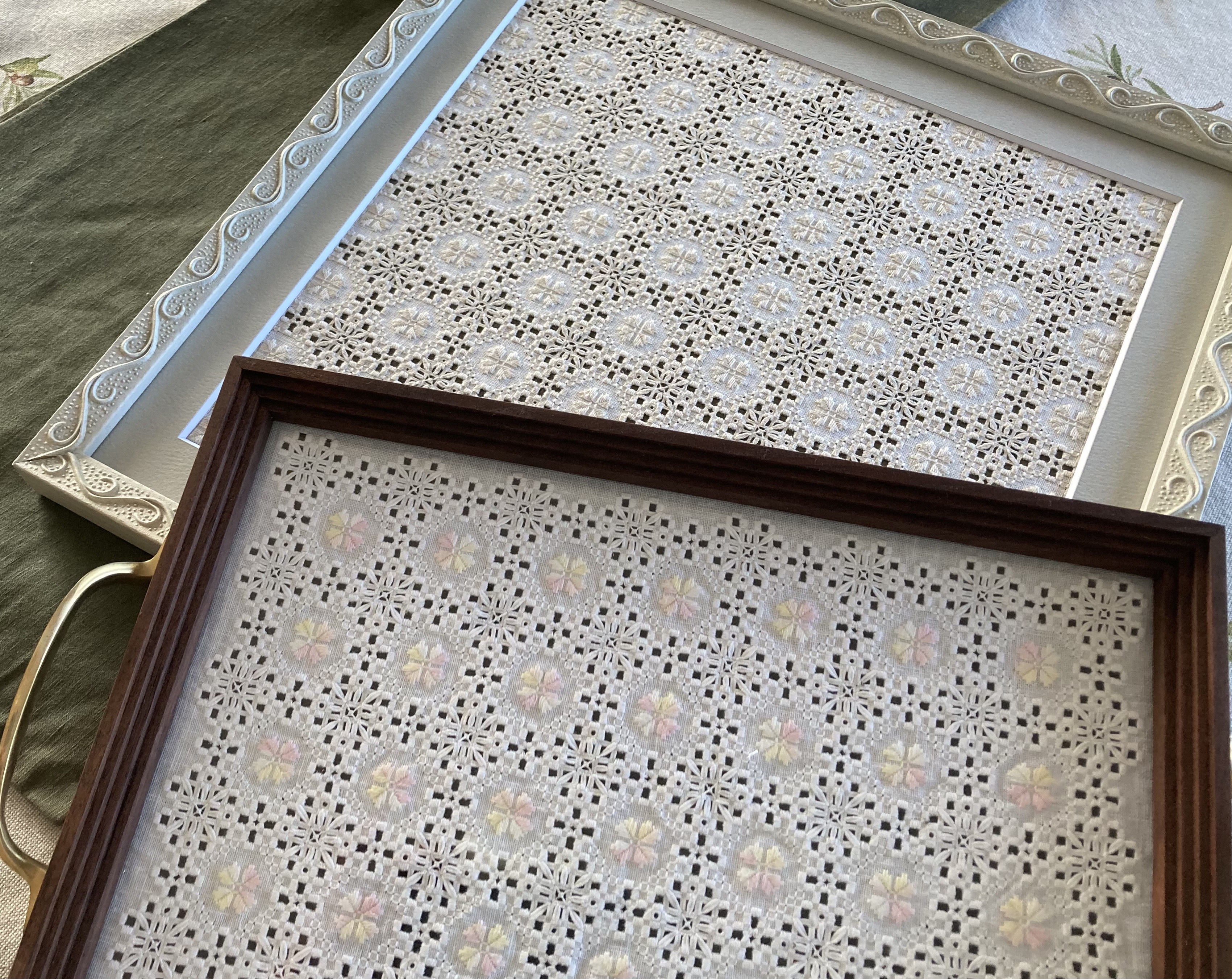 Aさんはお花模様に段染めの糸を使用しトレイに。