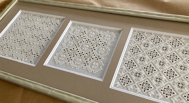 3種類それぞれ刺したものを1つのフレームに窓を開けて納めてみました。